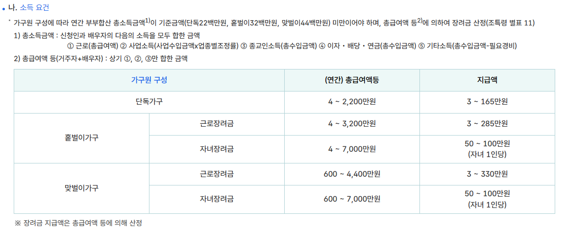 근로장려금 요건